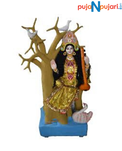 This GoddessSaraswati Idol isMade of Eco Friendly Caly Material with Durable & Long Lasting Colours.This statue can be used for performing saraswati pooja on Vasant Panchami.Goddess Saraswati is the personification of wisdom, knowledge,learning,music, skills and arts.