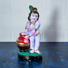 Introducing the Handmade Clay Baal Krishna Golu Dolls with Makhan Mataki – 24 cm, a delightful portrayal of Lord Krishna as a child, lovingly known as Baal Krishna. This handcrafted clay doll captures the playful essence of Krishna, depicted joyfully stealing butter from a mataki (pot), a scene that symbolizes his innocence, mischief, and charm. This adorable figurine brings a sense of joy and devotion to your Navratri celebrations, making it a perfect addition to your Golu display. Use: The Baal Krishna Golu Doll with Makhan Mataki is an ideal piece for your Navratri Golu arrangement, where it adds a playful yet devotional touch. This 24 cm figurine can also serve as a decorative item for your home or altar throughout the year, bringing divine blessings and a sense of happiness to any space. The charm of Baal Krishna makes this doll a beautiful reminder of Krishna’s childhood stories, loved by devotees of all ages. Key Features:- Handcrafted with care by skilled artisans using high-quality natural clay, ensuring a durable and authentic design.Depicts Baal Krishna with a mataki of butter, symbolizing his playful and mischievous nature, making it a joyful addition to your Golu setup.